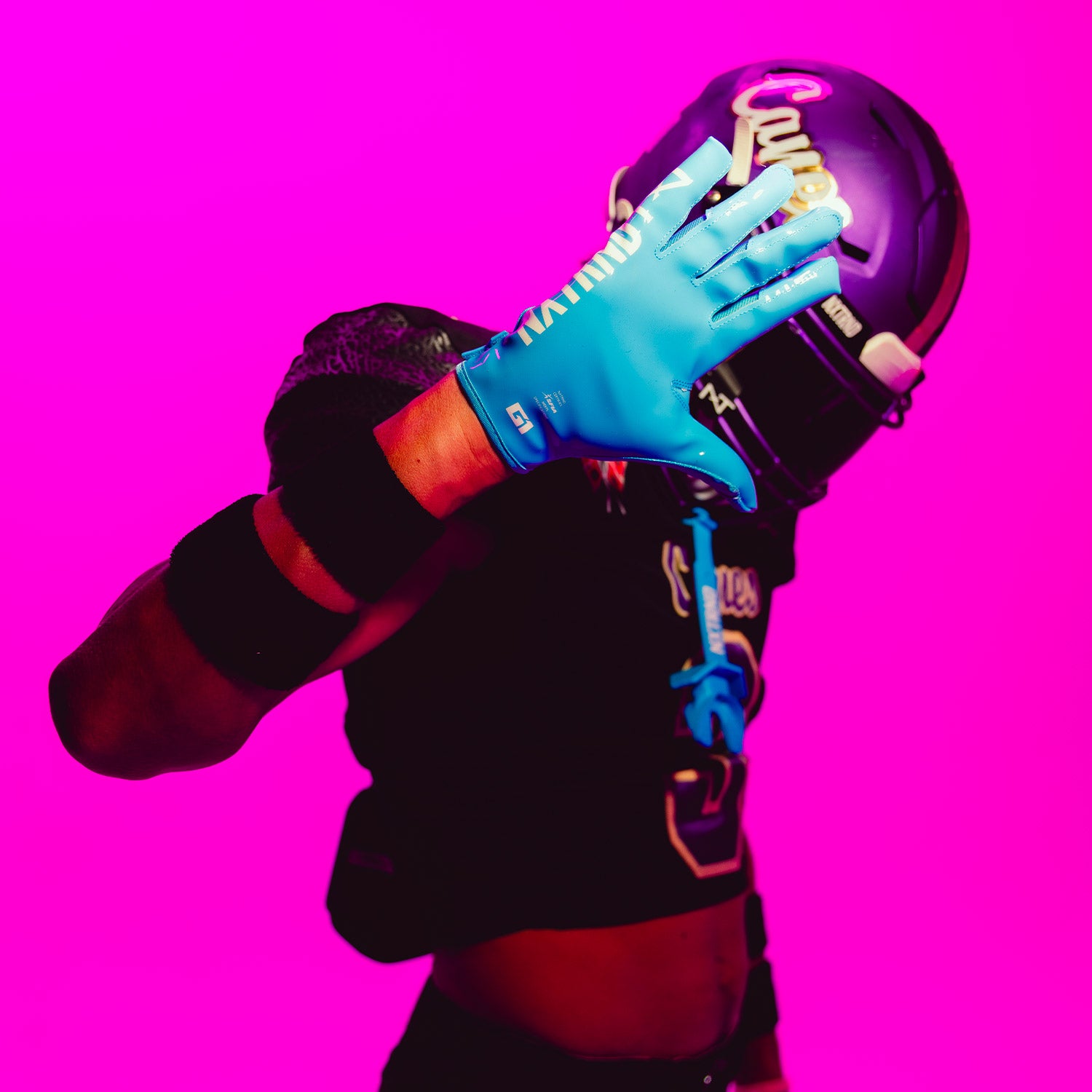 Play like the pros with NXTRND G1 Pro® football gloves: reworked fit. shorter finger caps for better ball feel. and updated stitching to reduce bulk.