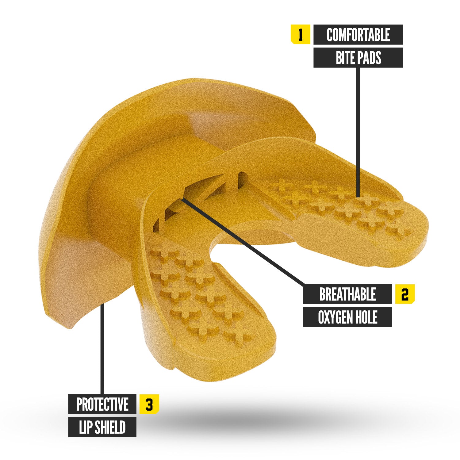Introducing the Nxtrnd One® Mouthguard. Featuring a removable silicone strap and comfortable X-pattern bite pads.